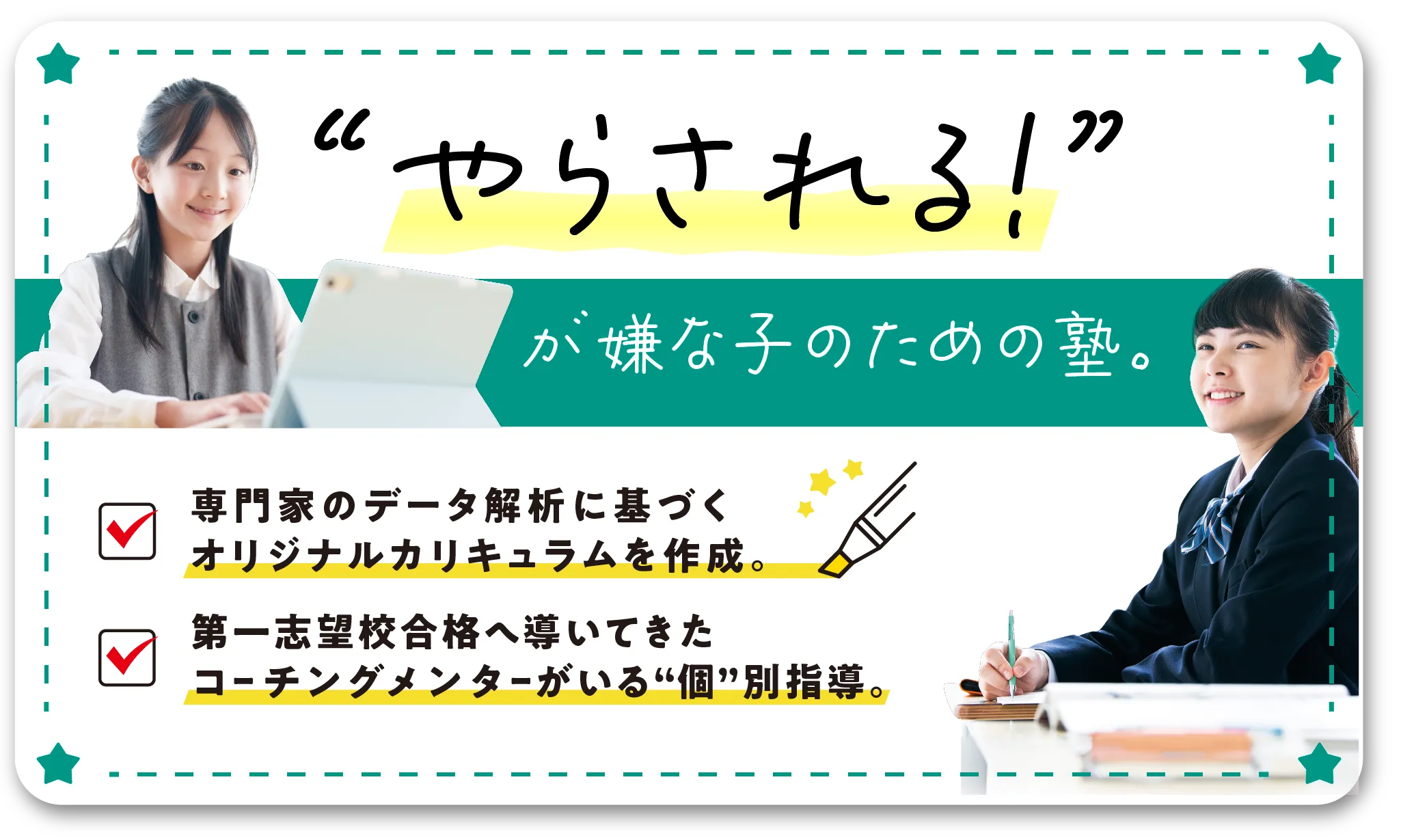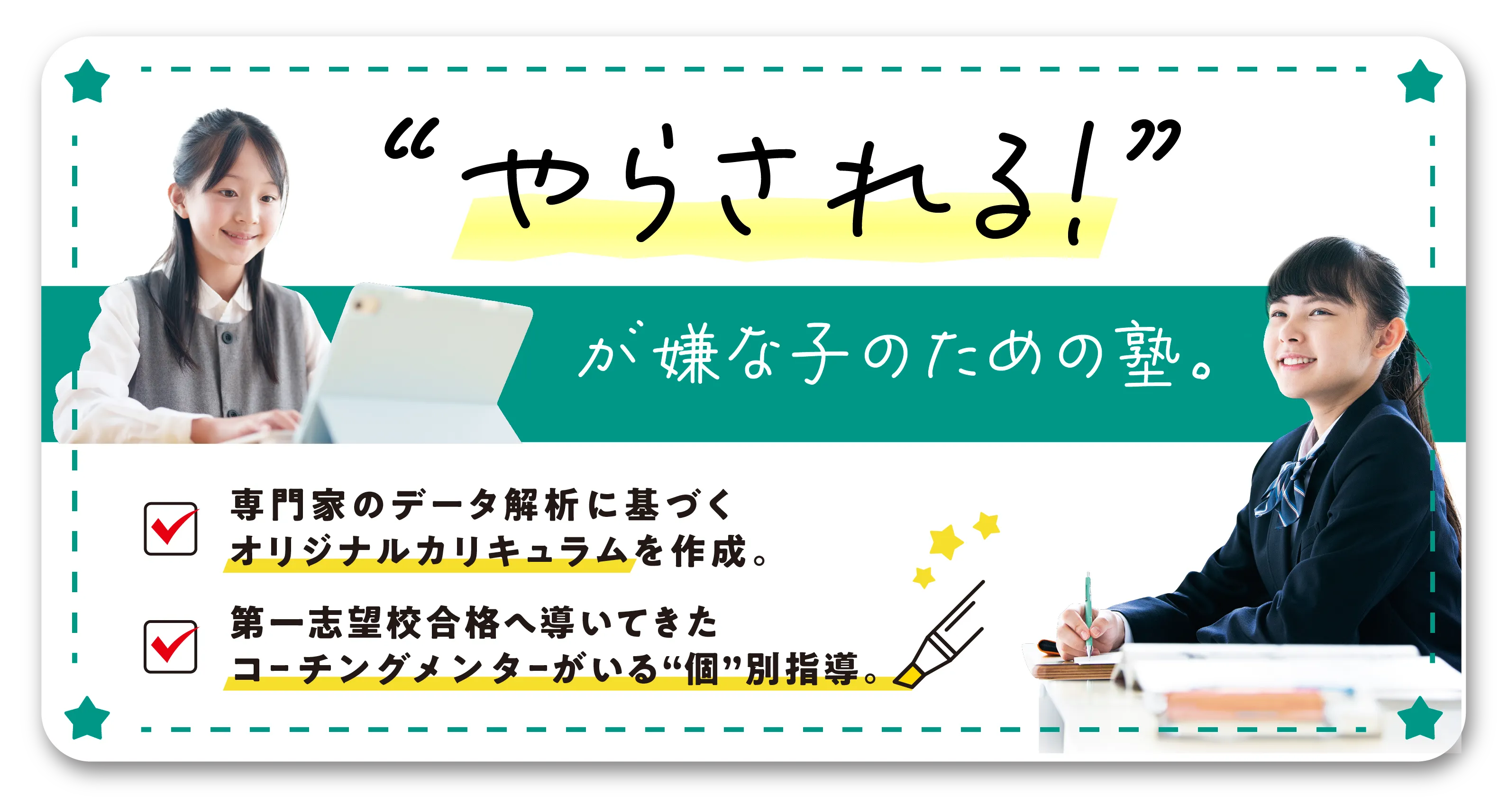 目標から逆算した個別カリキュラム作成で、「やらされる」から「自分で進める」学びへ転換します。